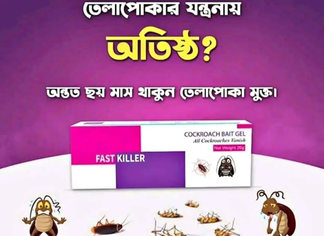 ছোট, বড় সকল ধরণের তেলাপোকার যন্ত্রণা থেকে মুক্তি পেতে ব্যবহার করুন Fast Killer ককরোচ কিলার জেল। এটি একবার ব্যবহার করেই অন্তত পাচঁ থেকে ছয় মাস নিশ্চিন্তে থাকুন তেলাপোকার উপদ্রব থেকে।