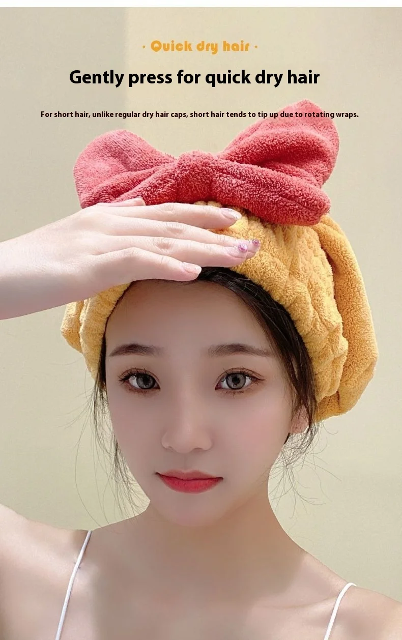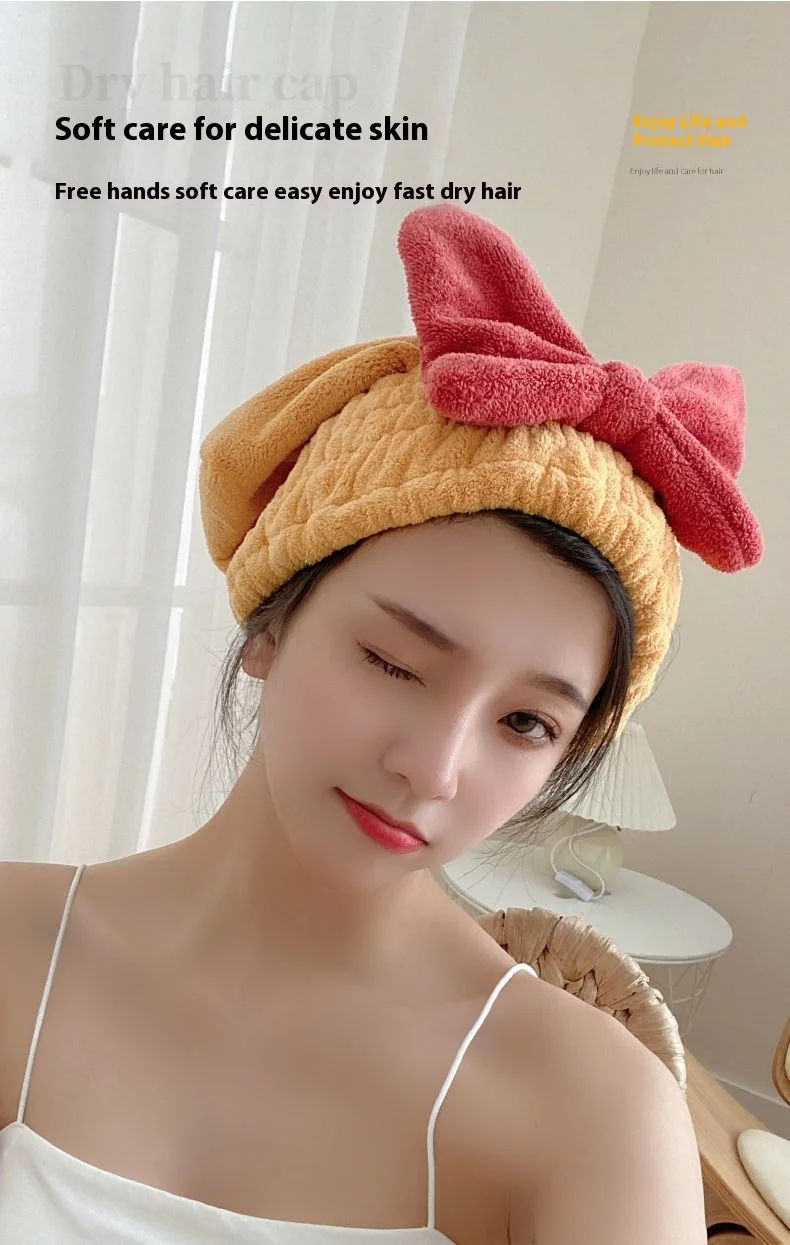 Women's Super Absorbent Thick Fleece Dry Hair Cap Cute Shower Wrap Quick-Drying Turban ( Blue)