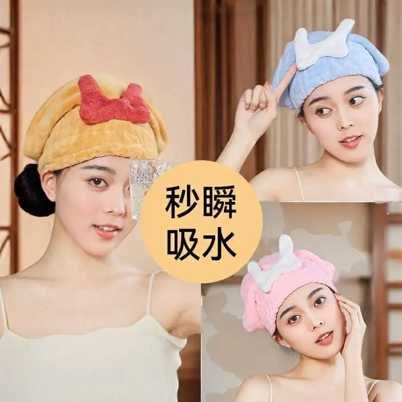 Women's Super Absorbent Thick Fleece Dry Hair Cap Cute Shower Wrap Quick-Drying Turban ( Pink)